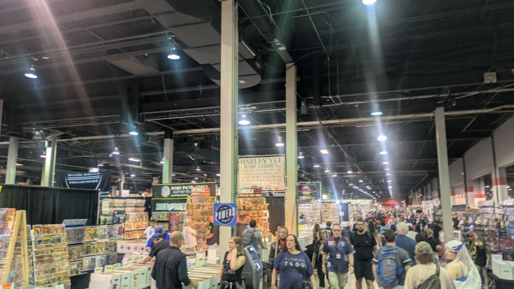 He’s a die-hard CW’s The Flash fan, so our priority was making it to that panel. We arrived on time, only to realize quickly that this was not going to be an ordinary show. The place was buzzing like never before. It was so packed we even got held up in the Skybridge (my “secret bridge to Khazad-dûm”). Thankfully the delay was short, and soon we had our tickets scanned and stepped into a show floor that looked and felt completely fresh